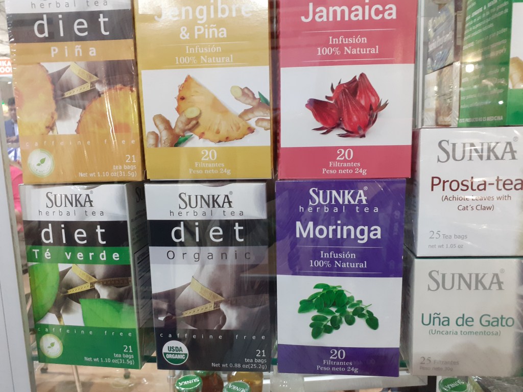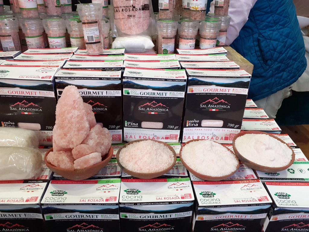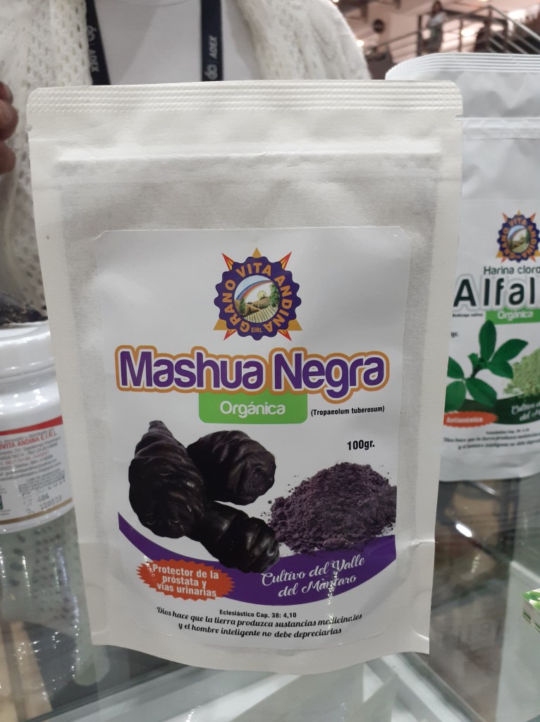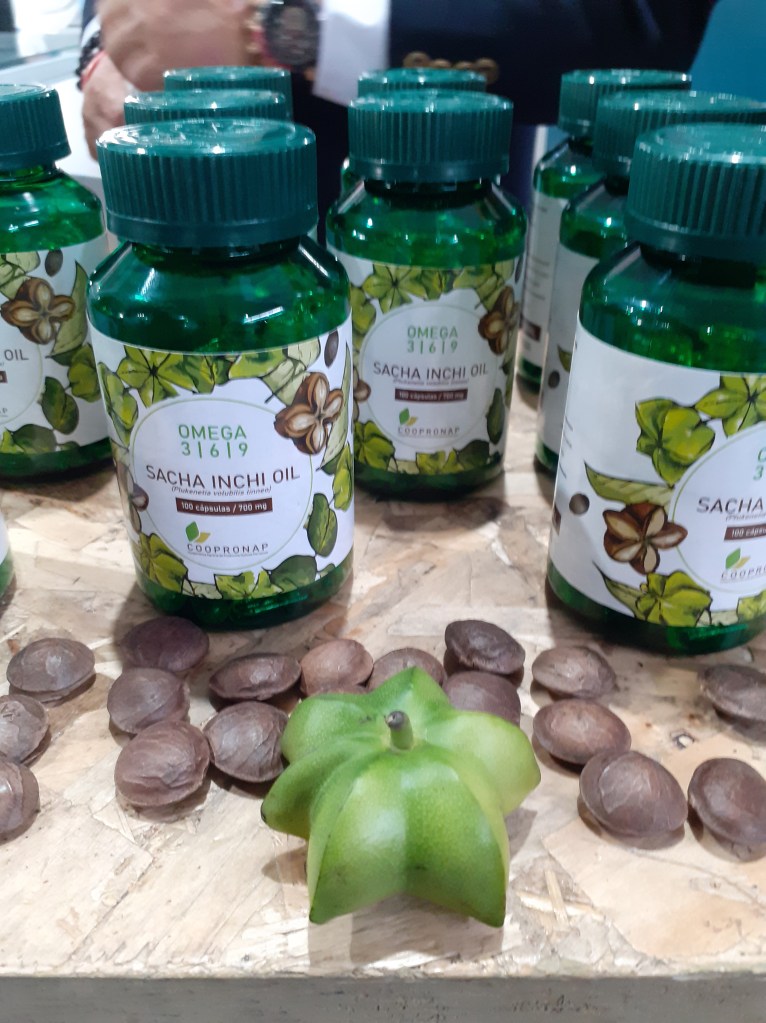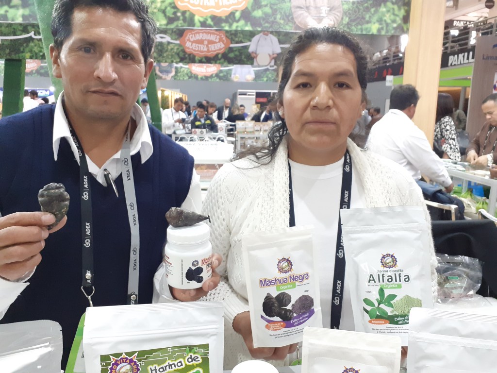 Se exhibieron asimismo la palta Hass, papas nativas, mandarina, mango, hojuelas de maca, plátanos, orégano, aguaymanto y piña deshidratadas, camu camu, granada, lúcuma, cacao, maca en polvo, hierbas aromáticas, chía, cúrcuma, yacón, kiwicha, sangre de grado, uña de gato, castaña, maíz morado, aceite sacha inchi, jengibre en polvo, panela, nibs de cacao, extracto de noni, pota, tilapia, trucha, paiche y otros más.