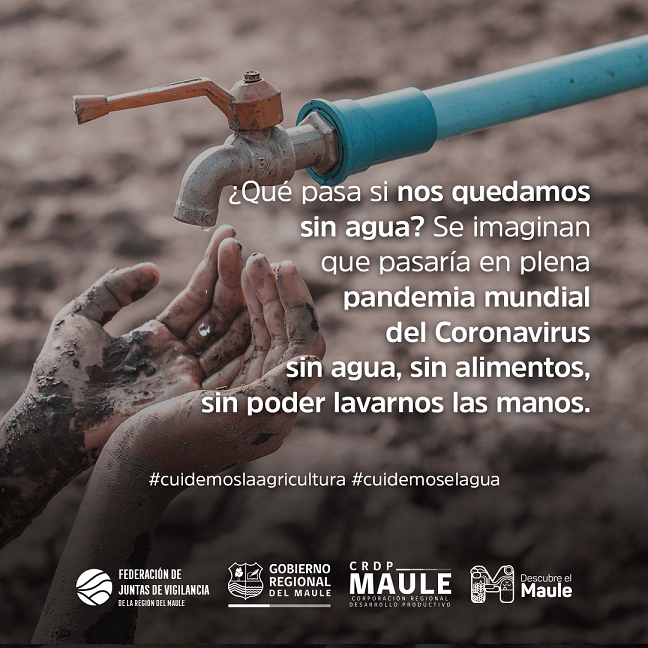 Ante la gravedad de la sequía en el país, la recientemente creada Federación de Juntas de Vigilancia de la Región del Maule con el apoyo de la Corporación Regional de Desarrollo Productivo del Maule (CRDP Maule), lanzaron una campaña de concientización para el cuidado del agua en la vida diaria y la importancia que ésta tiene en la agricultura.