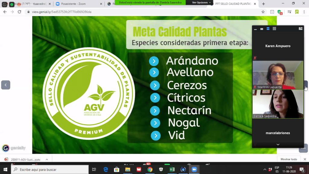 Santiago, Chile, 15 de junio 2020. Arándanos, avellanos, cerezos, cítricos, nectarines, nogales y vides serán las especies consideradas en una primera etapa del Sello de Calidad y Sustentabilidad para Plantas Frutales, iniciativa que en un plazo de tres años establecerá criterios para clasificar la calidad de las plantas y que fue lanzada este jueves con casi 500 asistentes en seminario online. Se trata de un proyecto desarrollado por Viveros de Chile AGV y apoyado por FIA, en el que participan Fedefruta y SAG.