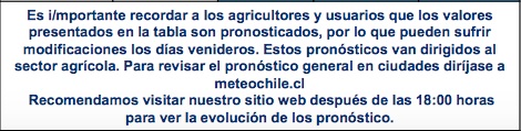 Cabe destacar que FDF entrega valores de heladas y precipitaciones ocurridas el 29 y 30 de septiembre pasados.