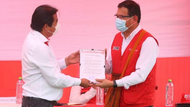 El Ministro de Agricultura y Riego, Jorge Montenegro Chavesta suscribió este martes un convenio de cooperación con el gobernador regional de Ayacucho, Carlos Rua que permitirá la construcción de las presas Yuncayllo y Patococha que almacenarán 4.8 millones de metros cúbicos de agua en la zona de La Esmeralda