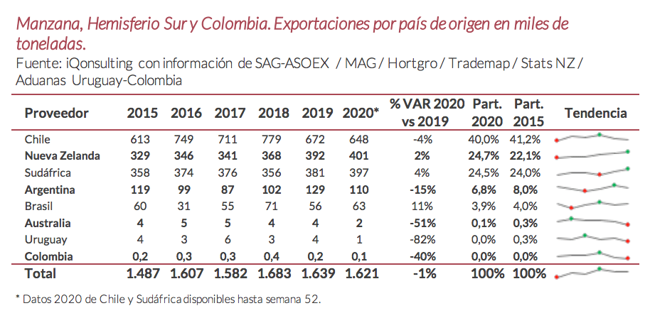 En términos generales, Chile es el principal país proveedor de manzanas (no sólo orgánicas) del Hemisferio Sur, como bien destaca el Anuario Manzana 2021 de IQonsulting.