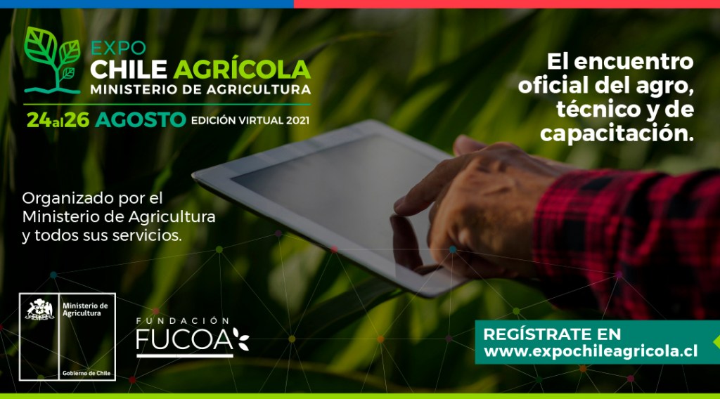 En su cuarta versión, el evento gratuito, organizado por la Fundación de Comunicaciones, Capacitación y Cultura del Agro (FUCOA) del Ministerio de Agricultura, se realizará a través del sitio web http://www.expochileagricola.cl entre el 24 y 26 de agosto próximo, con la participación del Minagri y sus servicios, instituciones ligadas al agro, gremios y asociaciones agrícolas, la academia y empresas del sector.