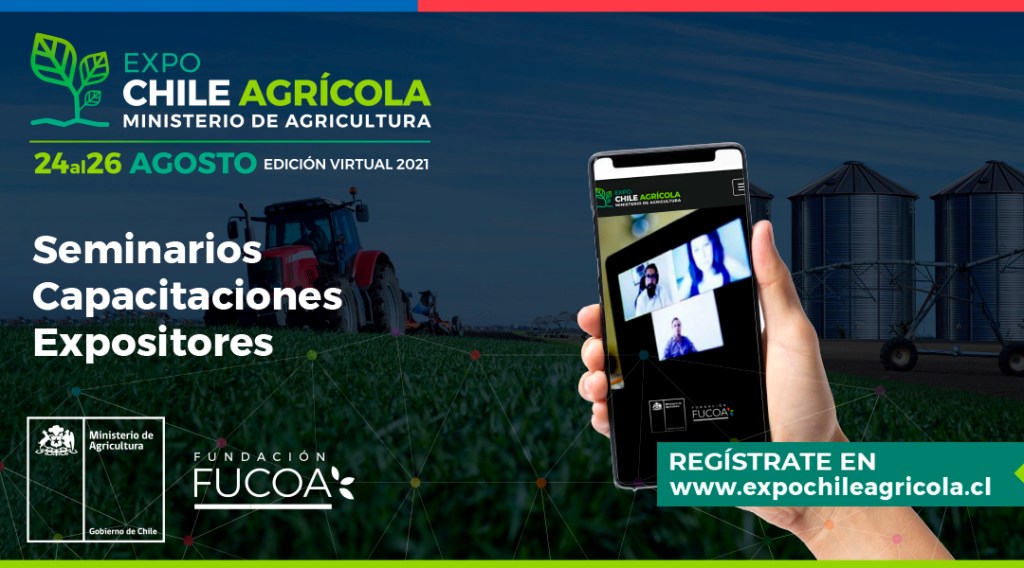 En su cuarta versión, el evento gratuito, organizado por la Fundación de Comunicaciones, Capacitación y Cultura del Agro (FUCOA) del Ministerio de Agricultura, se realizará a través del sitio web http://www.expochileagricola.cl entre el 24 y 26 de agosto próximos, con la participación del Minagri y sus servicios, entre ellos el Servicio Agrícola y Ganadero, instituciones ligadas al agro, gremios y asociaciones agrícolas, la academia y empresas del sector.