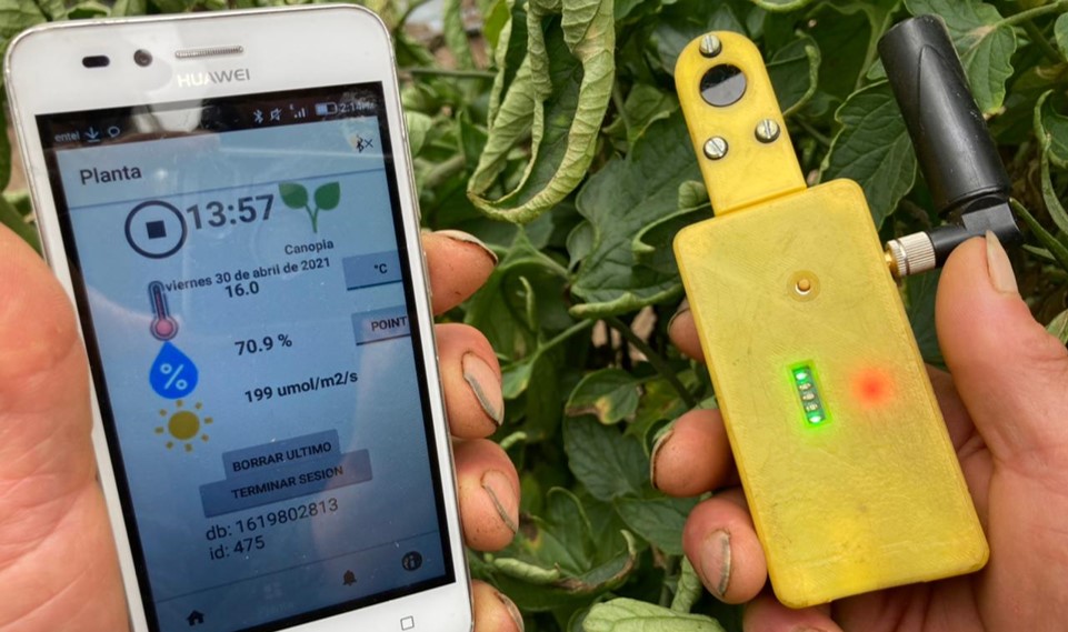 “Para usar el sensor se estableció un método de muestreo de fácil aplicación que el productor debe seguir para ir evaluando las plantas y hojas que corresponda, es decir, algo así como preguntarle a la planta en qué estado hídrico se encuentra, para lo cual se pone el sensor en contacto tan solo por unos segundos con la hoja siendo éste el encargado de tomar los datos desde la planta y los transmite vía bluetooth a una aplicación instalada en el celular del productor donde se realizan los cálculos del índice de stress de las plantas y lo va comparando con un valor crítico de stress que es para cada especie y que en este caso se hizo para tomates”, añade Wulfsohn.
