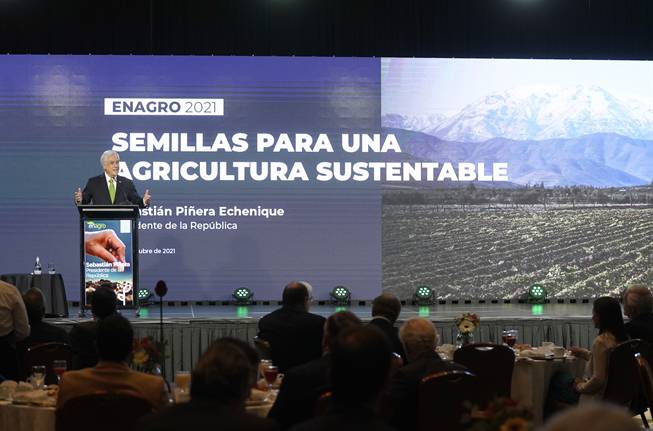 En el Encuentro Nacional del Agro (ENAGRO 2021), el Mandatario relevó las políticas impulsadas por el Gobierno para impulsar la actividad agropecuaria en el país. El Jefe de Estado enfatizó las medidas contra la sequía, para promover el desarrollo rural y el potencial agroalimentario de Chile.