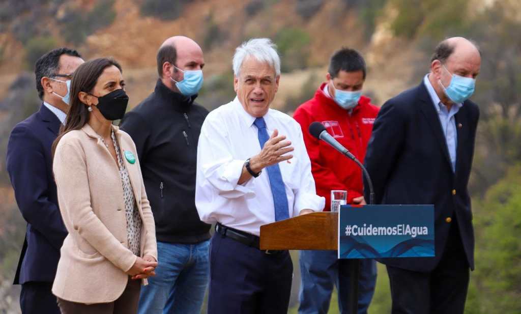 “La Región de Valparaíso es una de las más afectadas por este problema de la sequía. Por eso, poder asegurarle a la región el abastecimiento del agua es una fuente de enorme alegría y, créanme, de mucha emoción”, indicó el Mandatario tras sobrevolar el embalse acompañado por los ministros de Agricultura, María Emilia Undurraga, y de Obras Públicas, Alfredo Moreno.