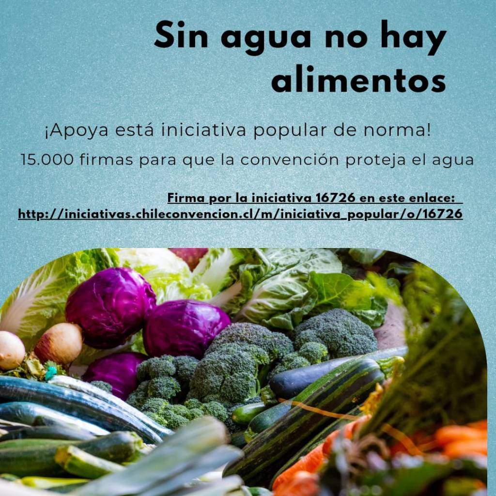 La primera que les presentamos es la de “AGUA: Elemento básico para la vida humana, animal, vegetal y de los ecosistemas”, y pronto les compartiremos otras iniciativas sobre el reconocimiento de Chile como país agrícola y rural, y sobre “Incentivo a la Investigación y Desarrollo en la Nueva Constitución”, para que estén atentos a nuestros próximos envíos.