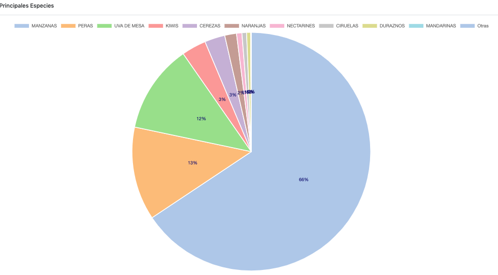 Ecuador es el segundo mercado de destino de las frutas chilenas en Latinoamérica, siendo las principales frutas enviadas manzanas (66% del total enviado a Ecuador), peras 13% del total, uvas de mesa 12%, kiwis y cerezas 3%, respectivamente, seguidas por naranjas con el 2%.