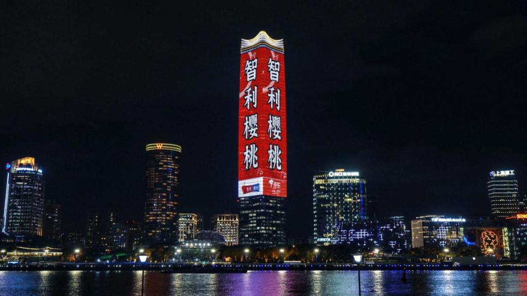 A las 19.30 horas de esa misma jornada, las cerezas chilenas fueron promocionadas en la vía pública en uno de los edificios más altos del centro de la capital económica china, el “Shanghai North Bund W Hotel”, el cual se iluminó con eslóganes que invitaban a no quedarse sin “sus cerezas chilenas” y adquirirlas en JD.com. El rascacielos, con luces rojas, creó un ambiente festivo lleno de calidez y buena fortuna. Pinduoduo y Tmall, los otros dos gigantes del comercio electrónico chino, también celebraron respectivamente la primera llegada marítima de la temporada.