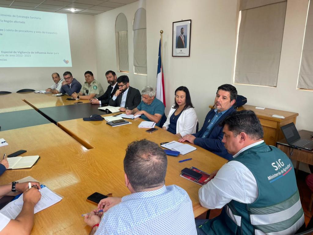 En la oportunidad se explicó el arduo trabajo que viene realizando el Servicio Agrícola y Ganadero en las regiones del norte del país con casos confirmados de influenza aviar, como son Arica y Parinacota, Tarapacá, Antofagasta y Atacama, a la que se suma la de Coquimbo. Además, se coordinaron los apoyos necesarios entre las distintas entidades para abordar la situación de la manera más rápida posible, atendiendo las denuncias de aves muertas o enfermas por parte de la ciudadanía e intensificando el muestreo a aves silvestres en distintas zonas de la costa de esta región.