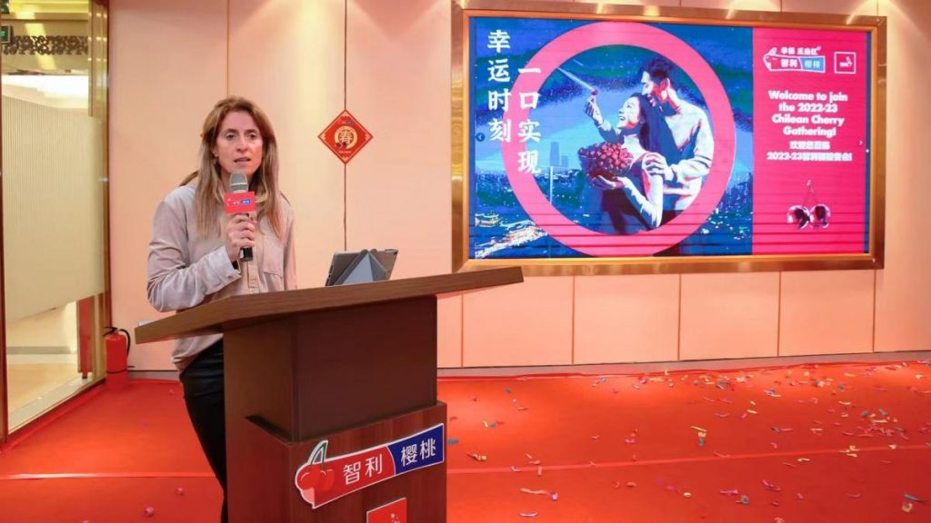 La semana recién pasada, Claudia Soler, gerenta del Comité de Cerezas de Chile de la Asociación de Exportadores de Frutas de Chile (ASOEX), dio una conferencia en WeChat a más de 1.000 oyentes del medio asociado de Simfruit, Produce Report, compartiendo las últimas estadísticas de exportación de cerezas chilenas.