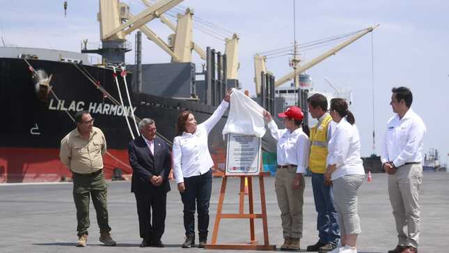 La presidenta de la República, Dina Boluarte, y la ministra de Transportes y Comunicaciones, Paola Lazarte, participaron en la inauguración de la nueva infraestructura del Terminal Portuario Multipropósito de Salaverry, en La Libertad.