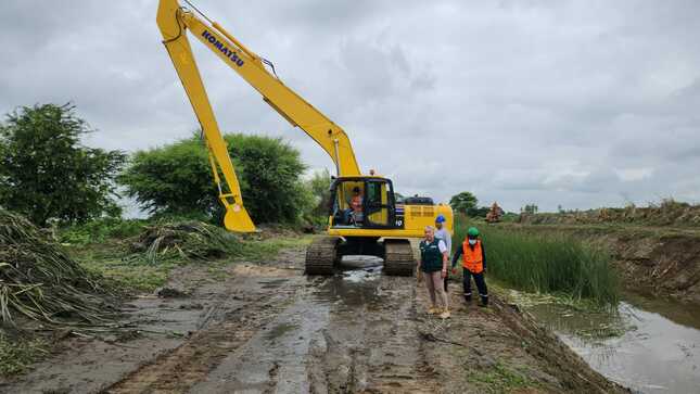La directora ejecutiva del Programa Subsectorial de Irrigaciones (PSI), Carmen Ríos Vásquez, quien lidera el equipo de intervención por disposición de la ministra Nelly Paredes del Castillo, se encuentra supervisando las operaciones de limpieza y descolmatación de 5.59 kilómetros del Dren 13.08 – 34.75, ubicado en el sector Nuevo Catacaos, en el distrito del mismo nombre, provincia de Piura.