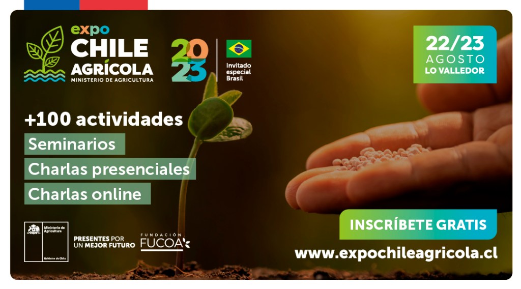 Más de 100 actividades gratuitas en dos jornadas de capacitación para agricultoras y agricultores de todo el país es lo que ofrecerá Expo Chile Agrícola 2023, el encuentro oficial del agro, organizado por el Ministerio de Agricultura a través de la Fundación de Comunicaciones, Capacitación y Cultura del Agro (FUCOA), que se realizará el 22 y 23 de agosto en el Mercado Mayorista Lo Valledor, región Metropolitana, y en http://www.expochileagricola.cl