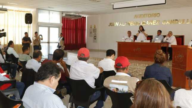 La ministra junto al congresista Héctor Ventura y el gobernador regional de Tumbes, Segismundo Cruces, se reunieron con representantes de asociaciones de productores agrarios y autoridades locales. También participaron el presidente de Agrobanco, César Quispe; los directores de Seguro y Fomento del Financiamiento Agrario, Iván Mena y de Estadística e Información del MIDAGRI, César Santisteban, respectivamente; y el director del Proyecto Especial Binacional Puyango Tumbes, Juan Farias, entre otros.