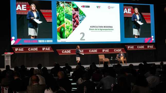 En el marco de la 61 edición del foro empresarial CADE Ejecutivos, la ministra de Desarrollo Agrario y Riego, Jennifer Contreras, propuso hoy una agenda de trabajo conjunto de colaboración público-privada, que contempla como uno de los principales temas, el destrabe de grandes proyectos de irrigación, que permitirán la ampliación de la frontera agrícola en 499 mil hectáreas en tierras nuevas y generadas.