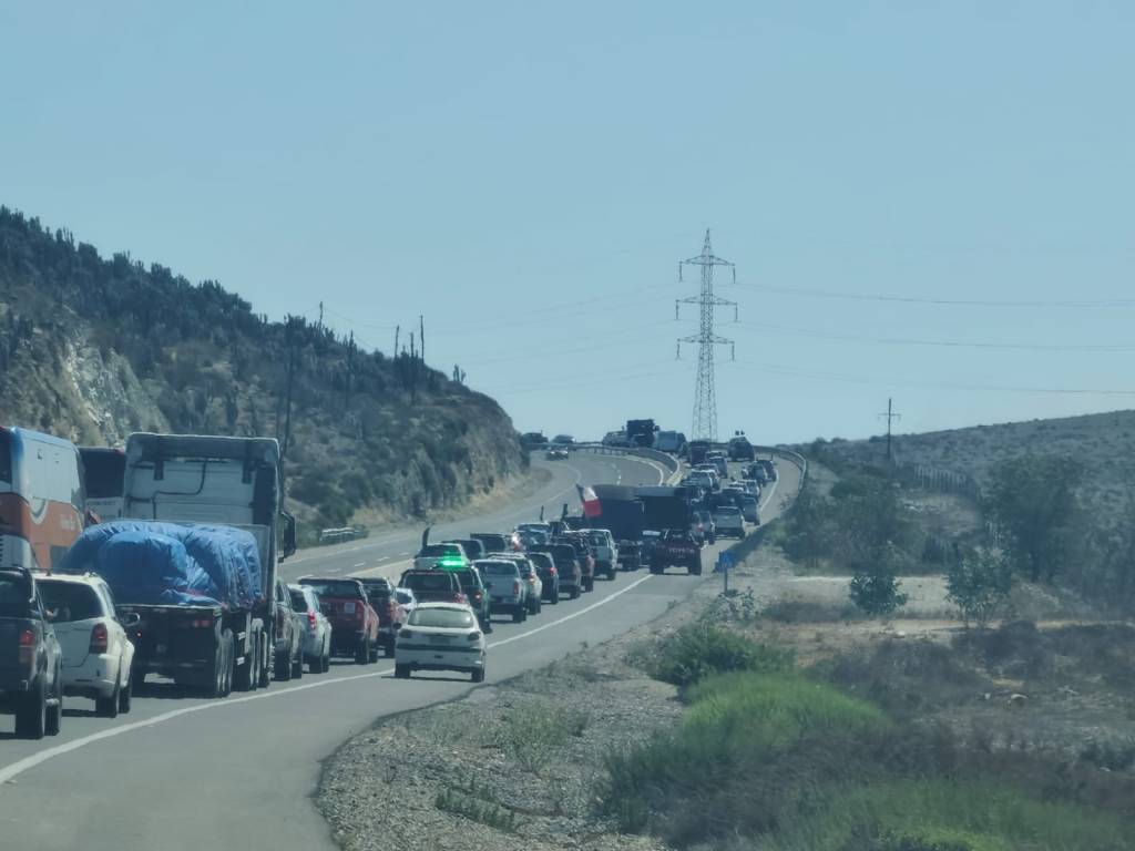 Más de 300 vehículos y camiones con tractores llegaron en caravana desde el cruce de Barraza hasta la ruta 5 norte, sector Socos en Ovalle durante la tarde de este martes, en una de las primeras manifestaciones por la crítica situación que vive la agricultura en la provincia de Limarí y el anuncio de que hasta abril del 2024 dura el agua que existe embalsada.