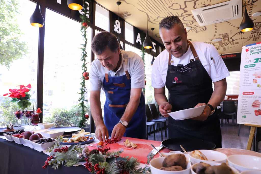 Por su parte, el chef Enrique Araya explicó que las combinaciones de estos menús pueden servir para sorprender a los invitados. “El pollo relleno y ojo que una pechuga puede rendir hasta para cuatro personas, entonces hay buenas alternativas. Mi recomendación de hecho es a preferir la pechuga entera, así aprovechamos el hueso para preparar un rico consomé con huevo que, como dijo el ministro, también ha bajado y le sumamos unas verduras picadas y nos queda espectacular (…) el puré de papa habitual que estamos acostumbrados a hacer puede ser una buena guarnición y lo podemos hacer un poco más elaborado si molemos bien la papa, mantequilla, crema y capuccino adentro y le va a quedar con un aroma espectacular”.