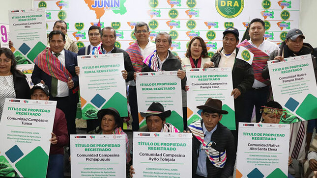 Como parte de las políticas de Gobierno, que buscan la formalización y desarrollo de la población agrícola, el Ministerio de Desarrollo Agrario y Riego (MIDAGRI), entregó 601 títulos de propiedad gratuitos a comunidades y pobladores de la región Junín, que ahora podrán gozar de seguridad jurídica y tener la oportunidad de acceder a diferentes servicios y programas del Estado.