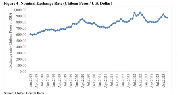 Respecto al tipo de cambio, USDA detalló que el dólar estadounidense se mantiene fuerte frente al peso chileno, lo que favorece los ingresos de los exportadores. Sin embargo, esto también se tradujo en un aumento de costos de los insumos agrícolas, como los productos químicos maquinaria, semillas y plantas, entre otros .En consecuencia, los márgenes no aumentan necesariamente, mientras que la inflación sí lo hace.