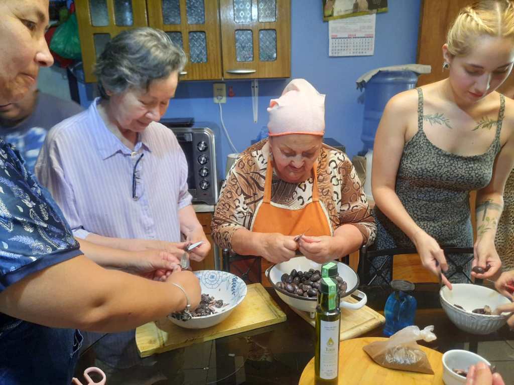 En una nueva reunión del Grupo de Extensión Tecnológica GET del programa “Transferencia Valorización de la Olivicultura de la Comuna de Freirina” desarrollado por el Instituto de Investigaciones Agropecuarias INIA Intihuasi y financiado a través del programa Gestión Territorial para Zonas Rezagadas del Gobierno Regional de Atacama, olivicultores y olivicultoras de la localidad de Las Tablas, en Freirina, aprendieron a elaborar pastas de aceitunas con el objetivo de diversificar sus productos.