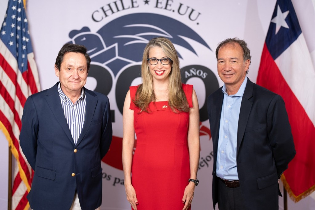 Durante una recepción realizada por la Embajada de Estados Unidos en Chile en agradecimiento a los sponsors del Bicentenario, el presidente de Frutas de Chile, Iván Marambio, junto al gerente general de la entidad, Miguel Canala-Echeverría, aprovecharon la oportunidad para conversar con la Embajadora de Estados Unidos en Chile, Bernadette M. Meehan, sobre el estado de avance del Systems Approach para los envíos de uvas de mesa al mercado estadounidense.