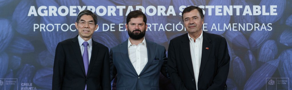 El Presidente de la República, Gabriel Boric Font, participó en la firma del protocolo para el acceso de almendras chilenas al mercado chino. En la ceremonia estuvo acompañado del canciller Alberto van Klaveren, del ministro de Agricultura, Esteban Valenzuela y del viceministro de Aduanas de China, Wang Lingjun. Con este hito, se continúa ampliando la canasta exportadora de nuestro país al gigante asiático. “Esta es una buena noticia para el comercio, para la agricultura y para la economía de nuestro país que, como he dicho en reiteradas ocasiones, este es el año de su despegue”, señaló el Mandatario.