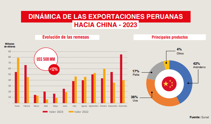 Pese a un 2023 atípico en el sector agrícola peruano, debido a los problemas climáticos, las remesas hacia China lograron superar los US$ 500 millones.