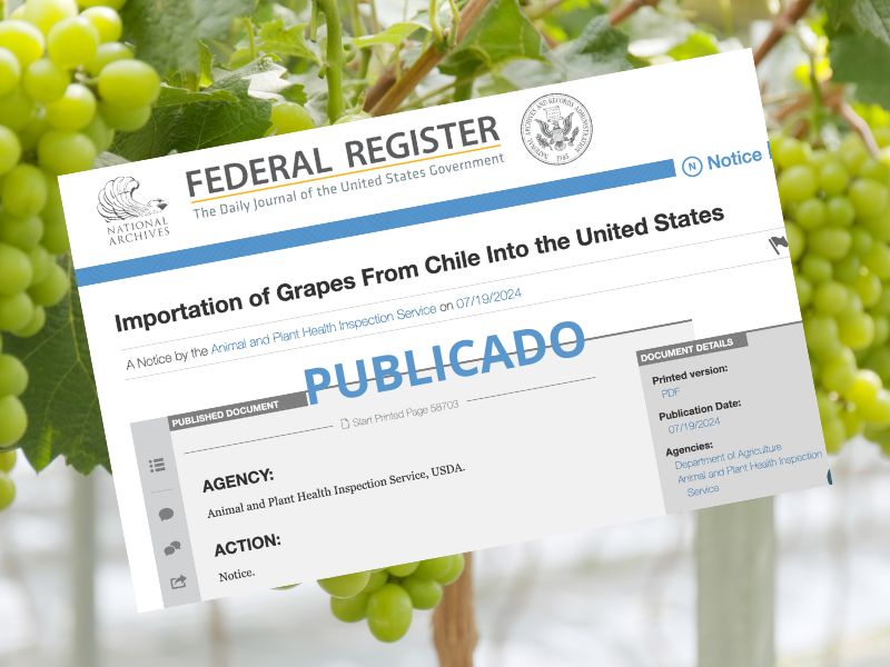 De acuerdo a notificación en el sitio del Federal Register de Estados Unidos (símil al Diario Oficial en Chile) publicado se encuentra protocolo que permitirá las exportaciones de uvas chilenas bajo Systems Approach.