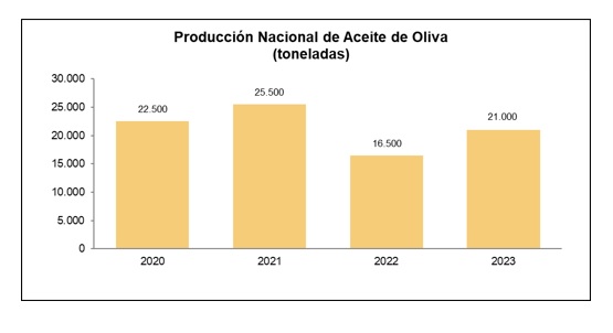 Chile no ha estado ajeno a las vicisitudes del mercado internacional en la producción de olivos, específicamente en aceite. Es más, la producción en Chile en los últimos años ha tenido variaciones tanto al alza como a la baja, como se observa en el gráfico. En 2021 se observó una producción histórica debido a los manejos productivos y a las mejores condiciones climáticas que permitieron el aumento de la producción. “En el 2022, se observó una baja productiva principalmente por la restricción hídrica que provocó pérdidas de rendimiento y por el añerismo en huertos que venían con producciones históricas del año anterior. Y el año pasado, se produjo un alza del 27% respecto al año anterior”, comenta Gabriela Moglia, gerente general de Chile Oliva.