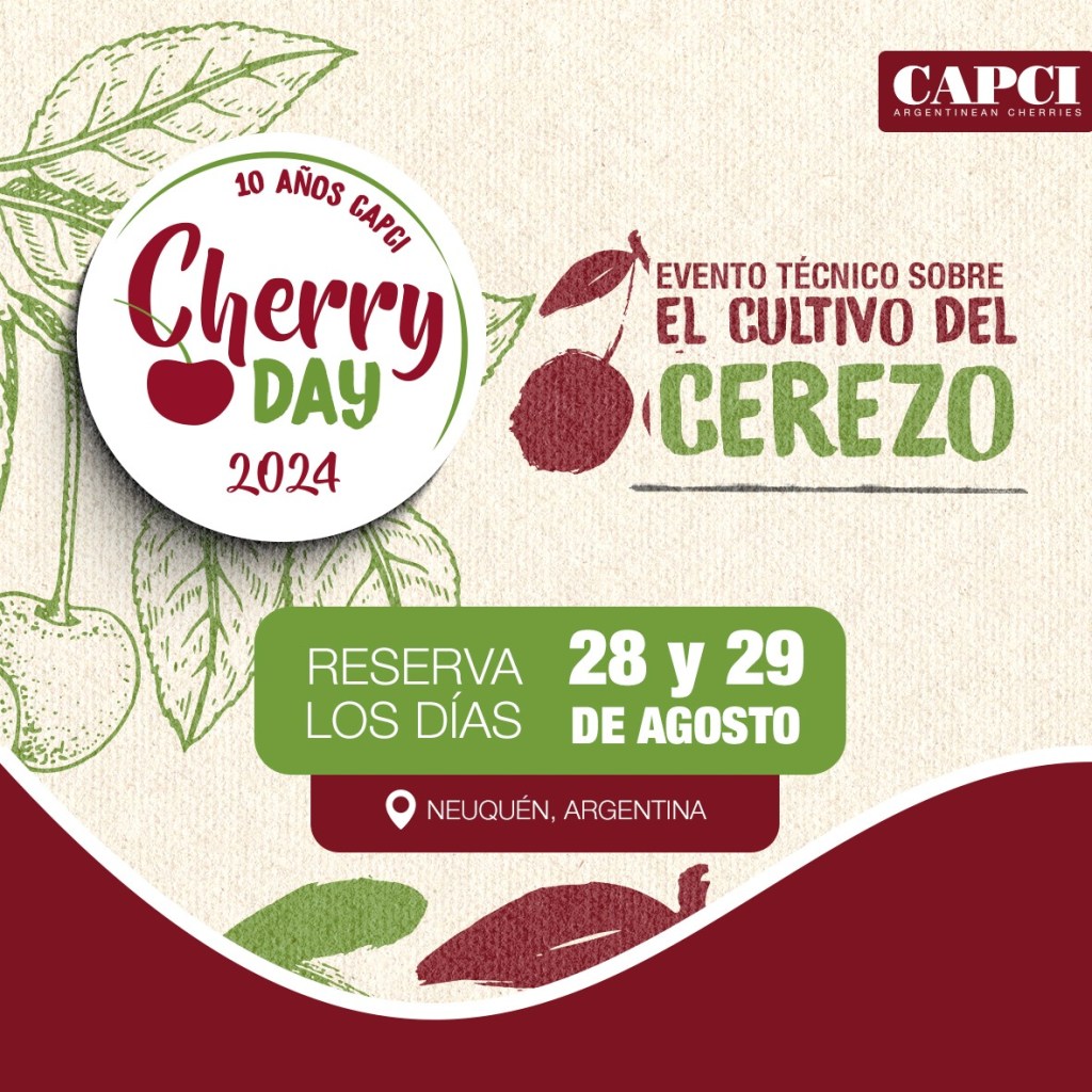El próximo 28 y 29 de agosto, en Neuquén, se dará lugar al más importante evento de la industria cerecera trasandina; se trata de Cherry Day, instancia organizada por la Cámara Argentina de Productores de Cerezas Integrados – CAPCI, que contará con diversas e interesantes charlas técnico-comerciales, además de un día de campo.