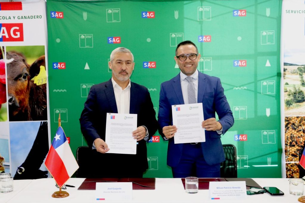 La firma fue suscrita por el director nacional del SAG, José Guajardo, y el director ejecutivo de la Agencia de Regulación y Control Fito y Zoosanitario de Ecuador (Agrocalidad), Patricio Almeida. En la ceremonia participó la Embajadora de Ecuador en Chile, Lotty Farah Andrade; el gerente general de Frutas de Chile, Miguel Canala-Echeverría, además, de profesionales del SAG, Agrocalidad, la Embajada de Ecuador en Chile e IICA.