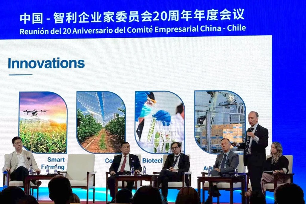 Durante su exposición, Marambio compartió su análisis en un panel integrado por Chai Haitao, Vicepresidente del Consejo de China para la Promoción de Inversiones Internacionales (CCIIP); Zeng Qiang, Vicepresidente Senior y Director de Operaciones de Bentai Group; Zhang Zhen, director general de Minmentals New Energy; Eugenio Arteaga, director general de Elecmetal; Ben Wang, Chairman & Ceo de Beyondsoft y María Paz Merino, directora ejecutiva del Centro de Biotecnología de Sofofa Hub.