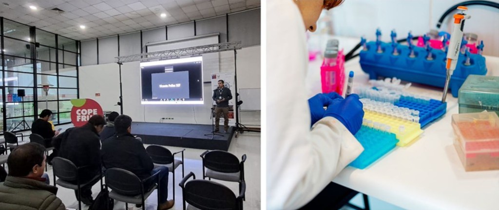 Héctor García, gerente del laboratorio Diagnofruit, explicó que con la crisis de las cerezas la empresa identificó la oportunidad de avanzar en este proyecto de investigación orientado a mejorar los procesos de detección. El objetivo fue lograr un sistema más oportuno, rápido y preciso, capaz de analizar un gran número de muestras en un corto periodo de tiempo y a costos considerablemente más bajos que los que predominaban en la industria. Según detalló, ese ha sido el enfoque principal del trabajo que han estado desarrollando durante los dos años de ejecución del proyecto.