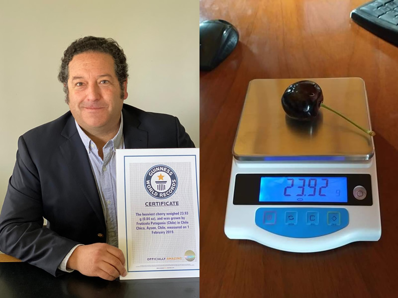 La Federación de Productores de Frutas de Chile, Fedefruta, informó que su vicepresidente, Claudio Vergara Tagle, recibió en estos días el certificado por parte de World Record Guinness, por haber cosechado en la Patagonia chilena la “cereza más grande del mundo”, hallada a comienzos de este año en la comuna de Chile Chico. Con sus casi 24 gramos, esta cereza de gran tamaño le arrebató … Continúa leyendo Récord Guinness: Cereza más grande del mundo se cosechó en Chile