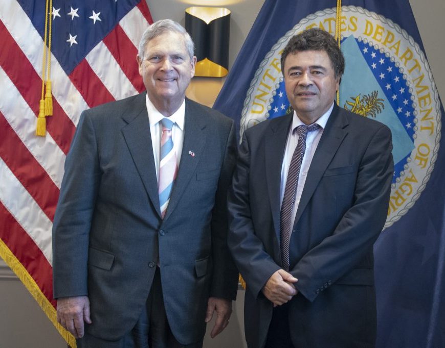 Durante el encuentro se abordaron también diversas temáticas referentes a la agricultura sustentable y a la implementación de medidas concretas para hacer frente a la crisis alimentaria y el aumento de precios tanto de los insumos como de los alimentos. Como un fructífero encuentro fue calificado por el ministro de Agricultura, Esteban Valenuela, la reunión que sostuvo con las autoridades del Departamento de Agricultura de … Continúa leyendo Ministro Valenzuela sostiene reunión de trabajo con secretario de Agricultura de EE.UU para acelerar puesta en marcha del systems approach para la uva de mesa
