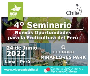 Las actividades internacionales de Viveros de Chile en formato presencial están de vuelta. En esta oportunidad, el próximo 24 de junio en el hotel Belmond Miraflores Park de Lima se realizará este interesante seminario que reunirá a destacados expositores chilenos y peruanos cuyas presentaciones estarán orientadas a productores, asesores internacionales y proveedores de insumos y servicios del agro. “El objetivo es presentar las alternativas exportadoras … Continúa leyendo Viveros de Chile realizará cuarto seminario internacional en Perú