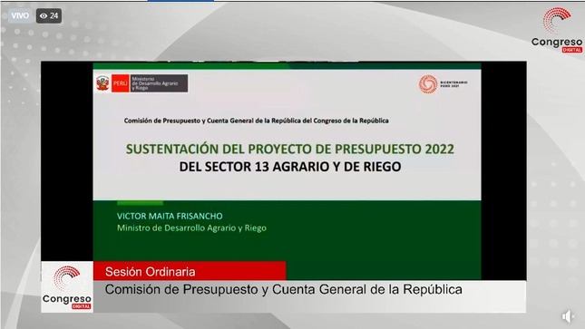 Ministro Víctor Maita sustentó presupuesto del MIDAGRI de S/ 2,455 millones para el año 2022