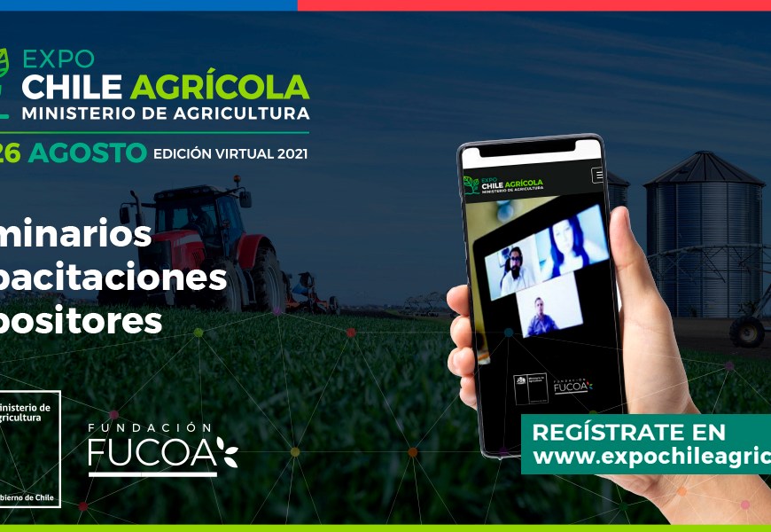 El encuentro oficial del agro, organizado por el Minagri a través de FUCOA, será 100% virtual y se realizará entre el 24 y el 26 de agosto a través del sitio web http://www.expochileagricola.cl, con la participación de más de 85 instituciones entre el ministerio y sus servicios, entidades ligadas al agro, gremios y asociaciones, la academia y empresas del sector. La inscripción y participación online … Continúa leyendo Más de 150 actividades de capacitación e información tendrá Expo Chile Agrícola 2021