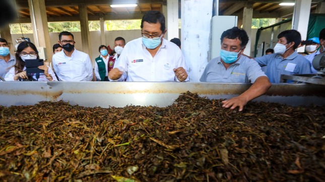 Inversión cofinanciada con el estado de casi S/1 millón a través de AGROIDEAS cambió la vida de agricultores de cooperativa cusqueña Huyro. El ministro de Desarrollo Agrario y Riego, Federico Tenorio supervisó la planta de procesamiento de té perteneciente a la Cooperativa Agraria de Agricultores “Huyro”, ubicada en el distrito de Huayopata en La Convención, tecnología a la que accedieron a través de un Plan … Continúa leyendo Con plan de negocio pasaron de abastecedores a productores de té y exportarán a Estados Unidos