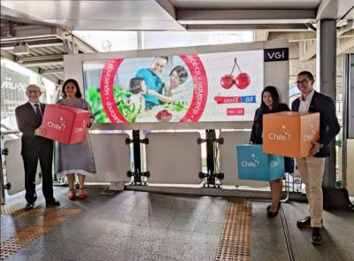 Con la finalidad de promover la llegada de cerezas al mercado de Tailandia, e informar de su disponibilidad y aportes para la salud entre los consumidores, el Comité de Cerezas de Chile de ASOEX, conjuntamente con ProChile, inauguraron una actividad de publicidad en el metro de Bangkok. La ceremonia de inauguración contó con la participación del Embajador de Chile en Tailandia, Christian Rehren, y la … Continúa leyendo Cerezas chilenas presentes en metro de Bangkok en Tailandia