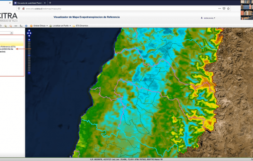 La plataforma está dirigida a productores y pequeños, medianos y grandes agricultores, buscando determinar la evapotranspiración de referencia, o bien el agua que ha consumido una planta o un cultivo determinado y así poder optimizar el recurso hídrico en el contexto de sequía y cambio climático para grandes y pequeñas plantaciones vía satelital. En Chile, la agricultura se desarrolla en condiciones de gran variabilidad climática … Continúa leyendo CITRA UTalca desarrolla plataforma gratuita que determina cantidad exacta de agua requerida para cultivos y frutales